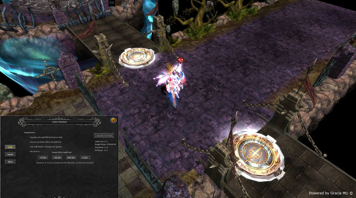 Legacy Guild System — система, разработанная специально для разнообразия геймплея MU Online. Играть в гильдии стало гораздо интереснее: помимо осады замка есть постоянная активность — совместное прохождение ивента Islands Gracia. В нём гильдия зарабатывает Guild Points, которые затем тратятся у NPC Guild Manager на усиление своей гильдии.